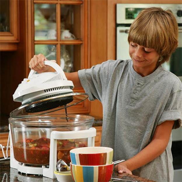 - in a device with a halogen heater it is possible to use several cooking methods: stewing, baking, cooking, smoking;