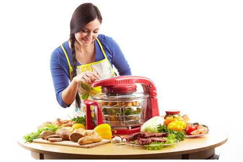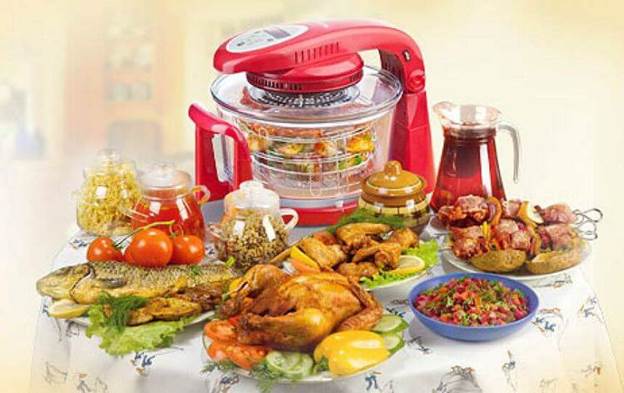 In devices with a halogen heater, in order for the food to reach the required readiness, streams of hot air are used, which blow products from all sides. Such a process leads to uniform heating of the dish, in addition, all useful substances are preserved in food.