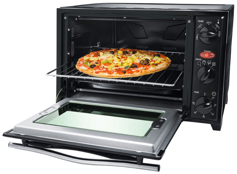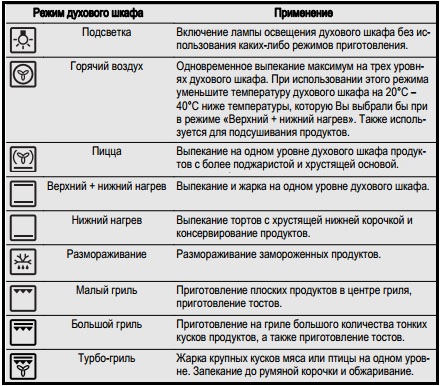 It is very convenient that such an oven is equipped with a timer and thermostat, which itself maintains the desired temperature. And in the instructions supplied by the manufacturer there are convenient signs explaining the use of a particular mode.