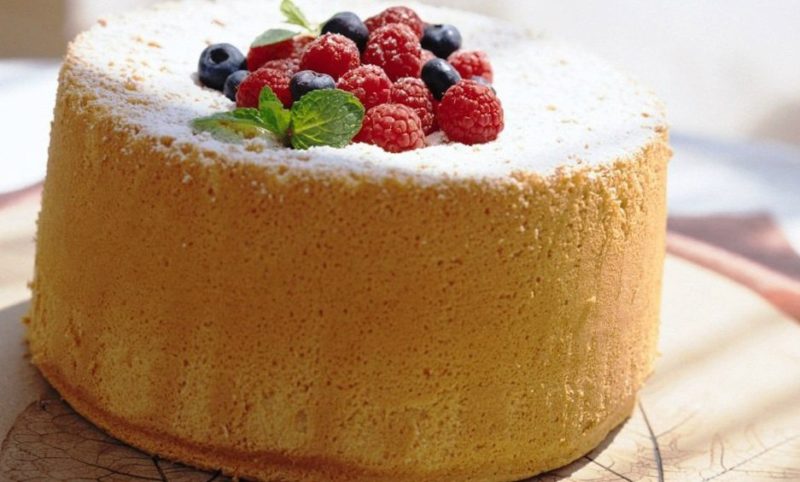 This is a gentle, magnificent dough on eggs. Proteins and yolks for him need to be whipped separately, and after mixing all the ingredients, immediately send the product to a preheated oven.