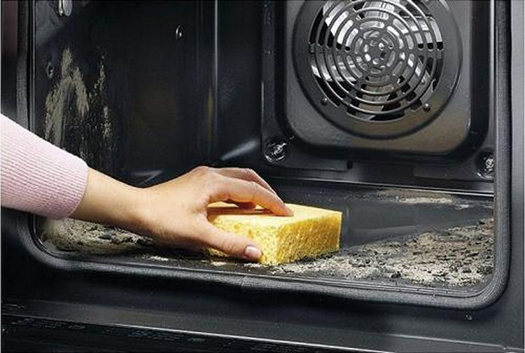 After the oven has cooled down, it is necessary to wipe the entire inner surface with a sponge or rag dipped in plain water. This is necessary to remove soot from the surface. After processing, you can load all the racks, trays and other elements inside the oven. The latter are cleaned either manually or using a dishwasher.