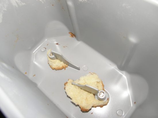 - When the finished product is removed, a hole from the scapula remains below. The reason for this is the failure of the reverse of the electric motor, which is responsible for folding the mixer after kneading.