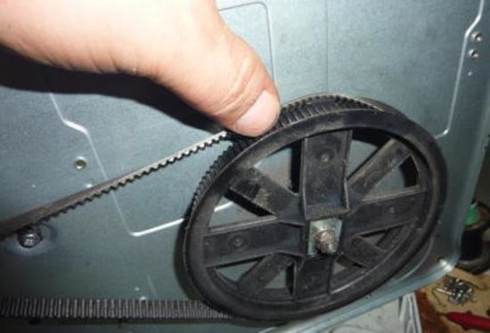 - Install a new belt on the motor pulley. Cog your teeth on a large wheel.