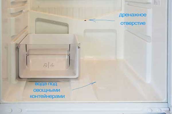 The hole may become clogged with crumbs or other small debris. Because of this, moisture will not go away. This is one of the reasons why water in the refrigerator accumulates and does not leave under the drawers. If measures are not taken in a timely manner, more and more liquid will accumulate: water will have nowhere to go, and it will begin to flow into the door seal.