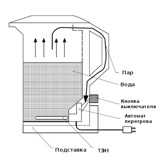 The device is extremely simple. After pressing the power button, electricity is supplied to the heating elements. They are called TEN, or tubular heating element. The heater is located either in a special stand or in the bottom of the device itself - it depends on the model.