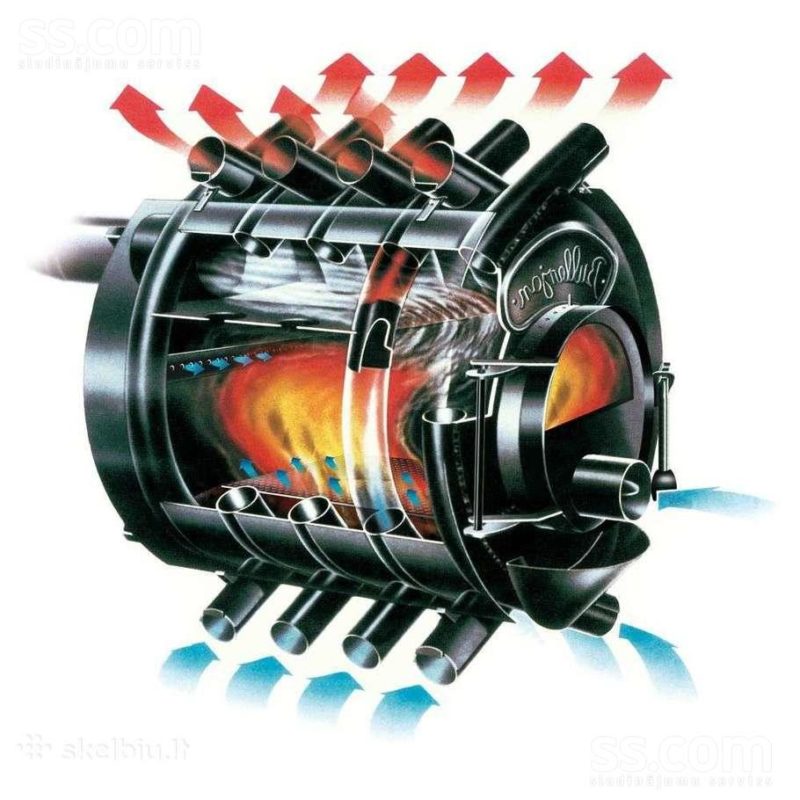 The water tank is heated by an open flame. Firewood, coal, paper, cardboard and other types of solid combustible materials are used as fuel.