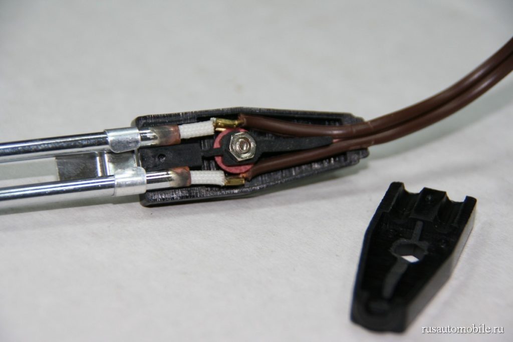 The shell of the heating element is made of aluminum, brass, copper or iron with a nickel coating. The hook is intended for installation of the device in a vessel with water.