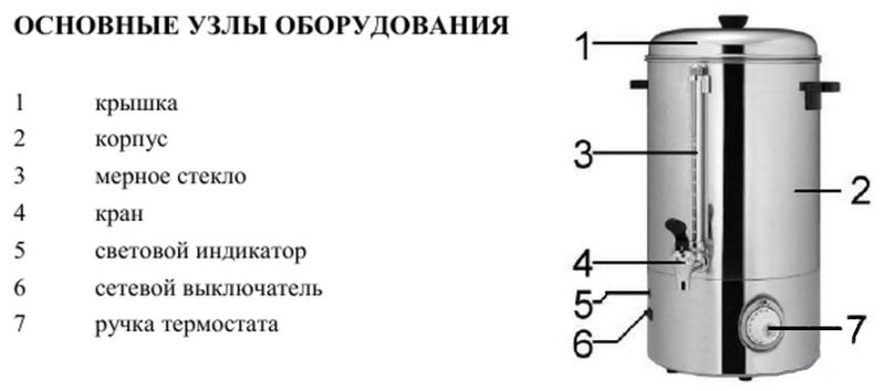 In batch apparatuses, the preparation of boiling water and its analysis are carried out in separate mode. This type of heaters includes the simplest types of kettles, pots, samovars, thermal pots.