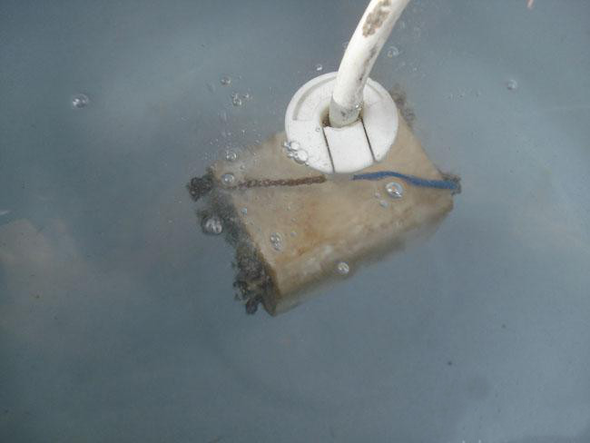 - A wooden plate is installed above the tank and is connected to a 220 volt network.