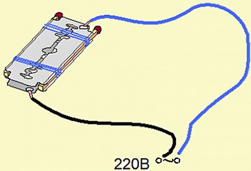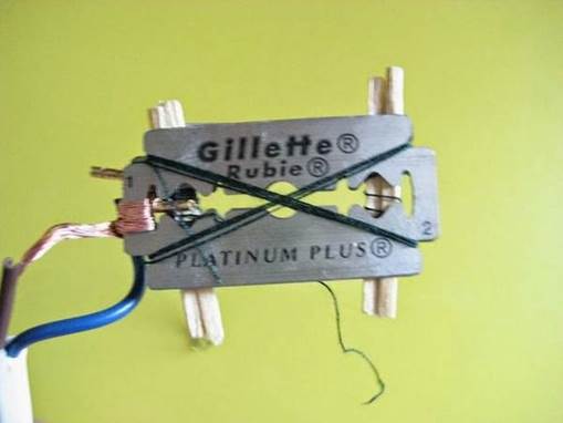 - Between the blades are placed 2 matches, which will serve as spacers to protect against short circuit.