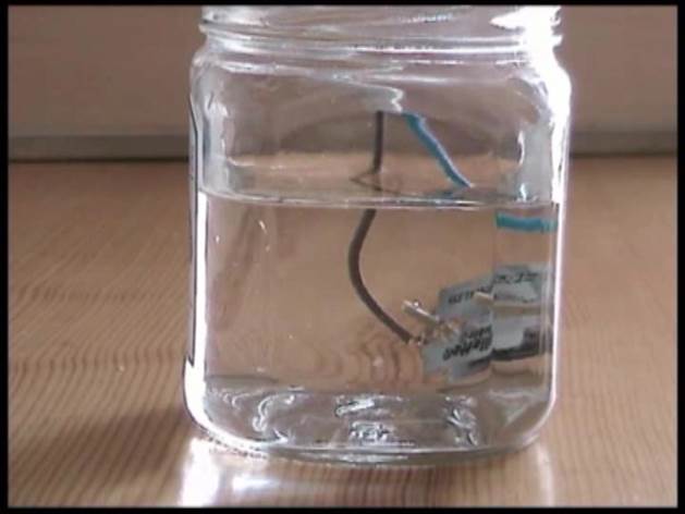 Now it remains only to pick up a tank in which it will be possible to boil water. The container that will be used with a boiler of this design should not be made of conductive material. Extreme care should also be taken when turning the device on and off. Before you turn on a home-made electric device in a 220 V network, you must first lower the device into water. When heating water, it is strictly forbidden to touch an electrical device or a container of water.