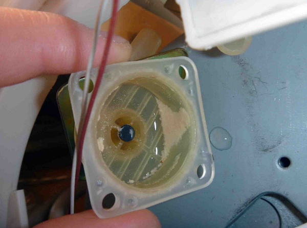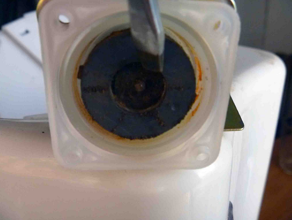 - After the impeller is dismantled, a magnet recessed in the chamber body becomes visible, which is also prone to scale deposits. It must be cleaned with care. You can do this with a screwdriver, but it’s safer to use a plastic or wooden spatula.