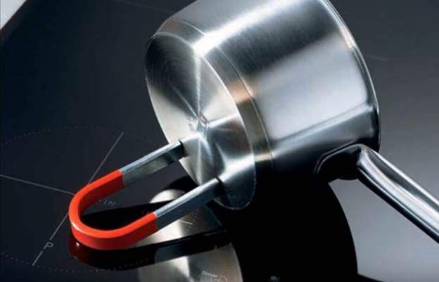 - Buying special dishes. Modern technology will not work if you put on its surface an ordinary aluminum pan or other material that does not contain metal. Some housewives used metal pots or a kettle before buying an induction cooker. The problem usually occurs during frying, as finding such a pan is very problematic. Most manufacturers, knowing this, began to produce and sell induction cookers with a special magnet, which will help to check the dishes before using them on the surface of the induction cooker.