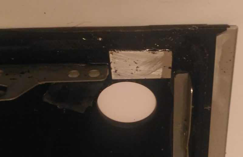 - Under the place where the surface cracked, an aluminum plate is glued.