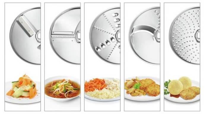 - Disks for shredding vegetables. It is convenient to use when you need to cook first courses and salads.