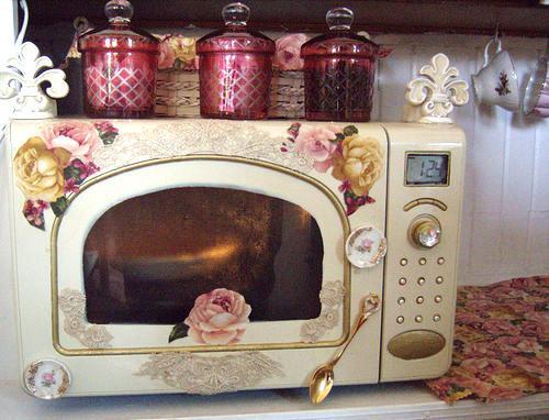 As in the case of manufacturing a low-power oven, it is advisable to remove all internal parts from the device to reduce weight, as well as the power cord. After that, paint the outer surface with any metal paint. You can transform the appearance of the device not only by coloring, but also by stickers.