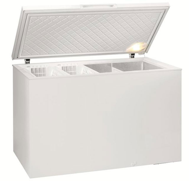 Another freezer in the format of a horizontal container for storage is produced by Slovenia. The single compartment for freezing has two additional baskets. The total volume of frozen food can reach up to 380 liters. The freezer produces a comfortable noise level of about 40 dB. In the event that a temperature is formed in the food compartment above the specified temperature, the chest will notify the user with a bright red light. In the event of a power outage, he will be able to maintain low degrees for 1.5 days.