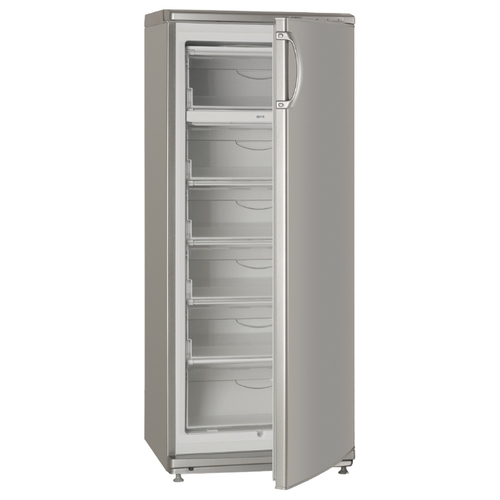 - Atlant M 7184-080 - a chamber with economical energy consumption of class A. Dimensions 60 x 63 x 150 cm, total volume 240 liters. Loading products with a total weight of 20 kg can be made after 12 hours of cooling. There is a possibility of a door overweight. Standalone cold preservation up to 14 hours. Electromechanical control, defrosting - manual. The device is low noise - 42 dB. The only drawback is the fragile drawer compartments.
