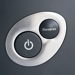 The reverse button is located next to the power button