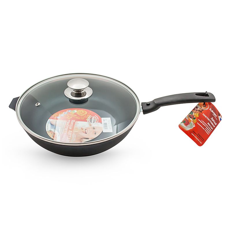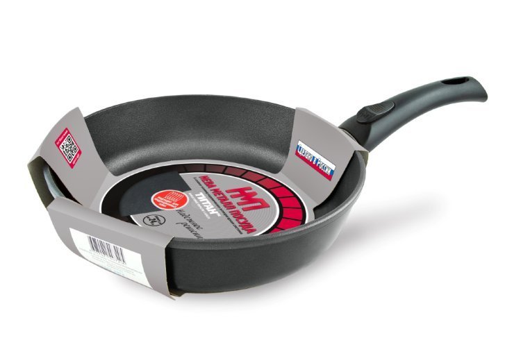 Country of origin - Russia, the manufacturer guarantees the use of quality materials. The handle is removable, so the pan can be used in the oven. In addition to the basic configuration comes several handles. The diameter of the dishes is optimal, 26 centimeters, the level of the side walls is 6 centimeters. The cover is made of durable glass.
