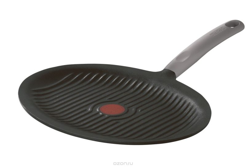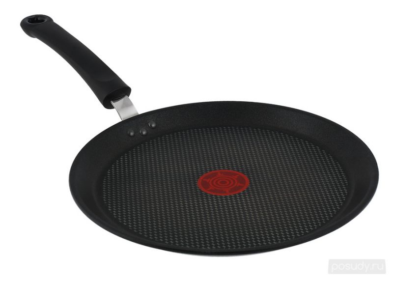 - Pancake. This pan is easily recognizable by its low sides. The diameter of the bottom can be different. The pan is light in weight, as it has an aluminum body. Non-stick coating allows you to bake pancakes without oil. Often this type of cookware has a heating indicator.