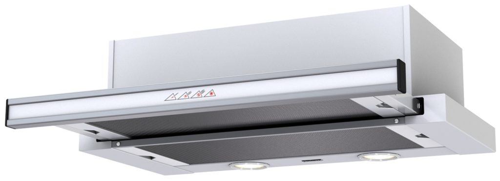 Manufacturer - Turkey. The width of the embedding is 60 centimeters. Size - 17.5x60x28 cm. A halogen lamp is built into the device (2x50 W, brightness is adjustable). Productivity - 550 m³ / h. Noise level - 46 decibels. The model is equipped with a touch control panel, two engines, a triple power level. The disadvantage is noisy work and uneconomical lighting. The average price is 3150 rubles.