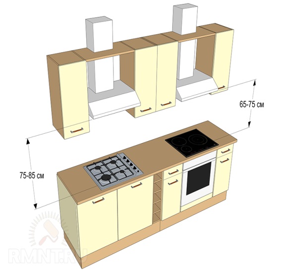 - It must be borne in mind that the height of the device above the hob varies between 65-75 cm. If these dimensions are not respected, the device will not cope with its functions;