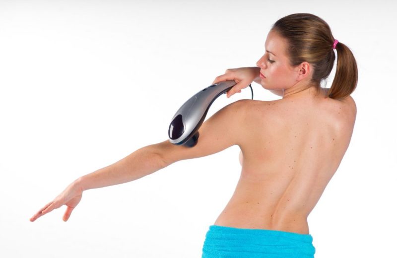 Relieving shoulder pain with a massager is slightly different than treating a back. It is necessary to place the nozzle on the upper part of the shoulder, and then slowly move it down throughout the muscle.