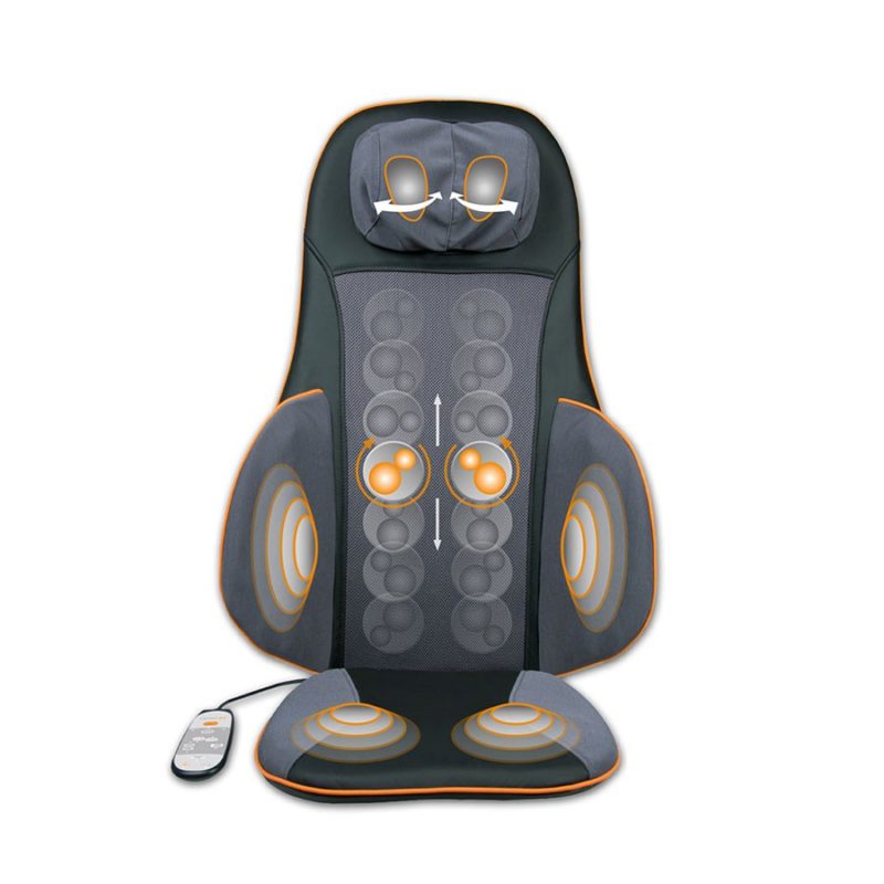 - Medisana MC 820/822 is an electronic modern body massager that provides acupressure of the back, neck and hips using massage rollers. An easy-to-clean fabric is used as the cover material of the cape. The device is attached to the seat using Velcro straps. For greater comfort when using people of different heights, height adjustment is provided. The timer allows you to automatically shut down the device after 15 minutes, the kit includes a remote control. The cost of such a massager varies from 11 to 18 thousand rubles.