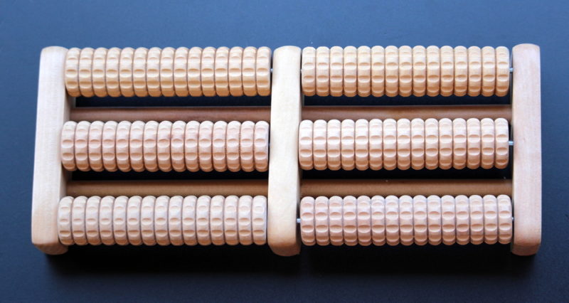 In order to perform a massage, you need to sit in a chair, put your feet on the device and roll the movable rollers with your feet. Using this device, the circulatory system will improve, spasms will decrease.