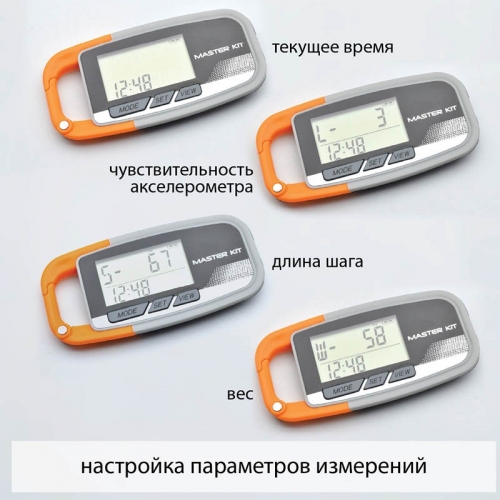 The pedometer can count the steps taken when moving in steps, jogging, climbing stairs, when walking.