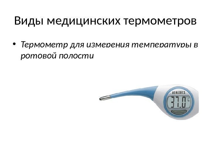 Thermometer for measuring temperature in the oral cavity.