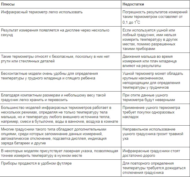 Features of infrared thermometers for children.