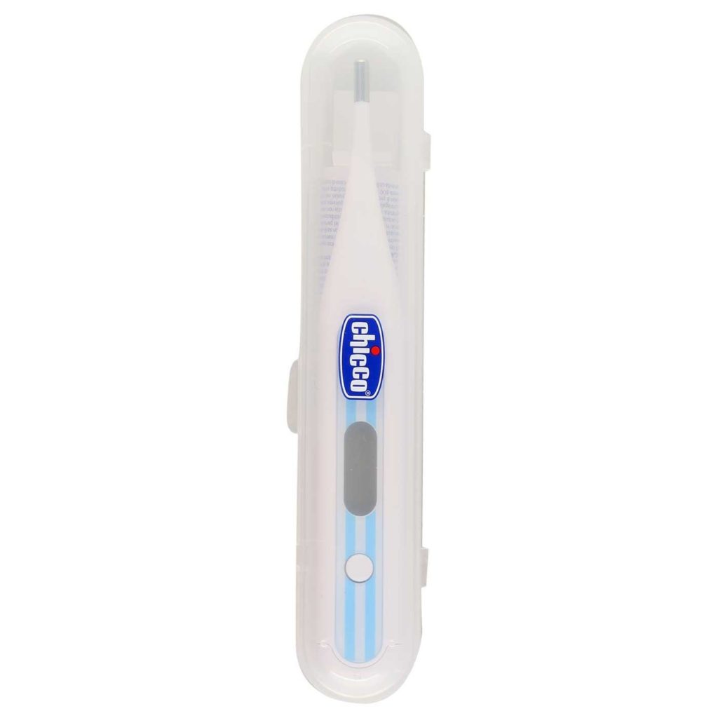 - Chicco Digi light. Children's thermometer It has a bright appearance and a flexible nose, at the end of which a sensor is placed. The advantage of this equipment is the integrated display backlight, as well as an audio signal. In addition, the device comes with a protective case.