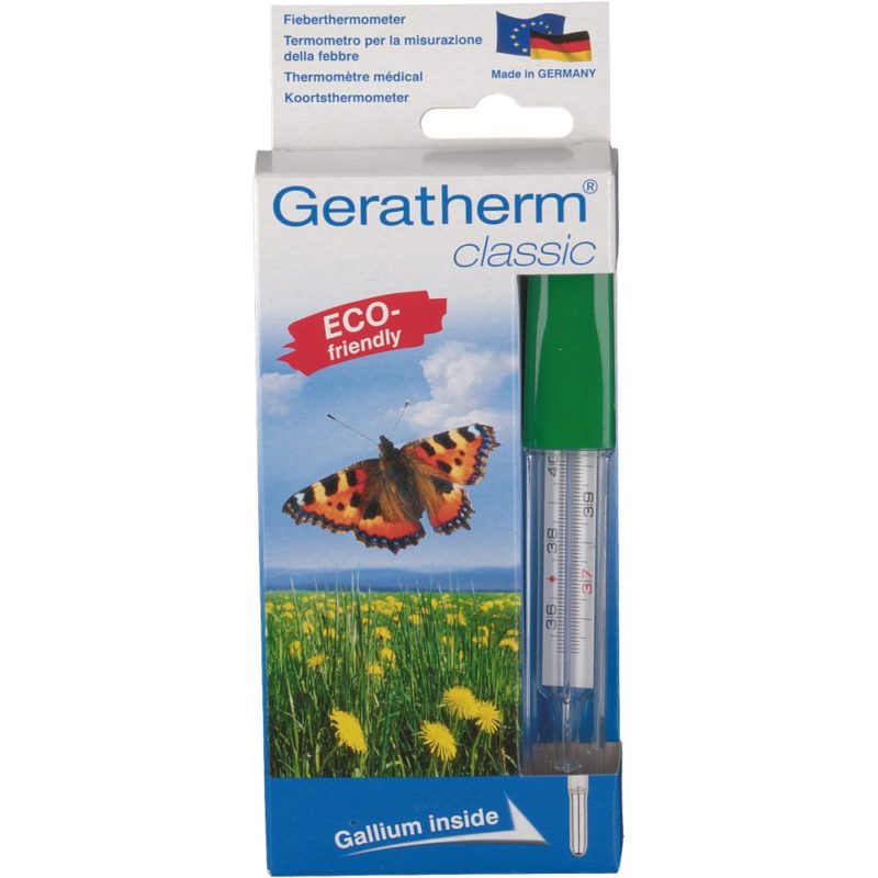 - Geratherm Classic is a mercury-free thermometer, comparable in characteristics to a conventional device, with absolute accuracy of readings and without additional features. The disadvantage of such a device is its fragility, since its body is glass, as well as the more difficult “knocking down” of readings.