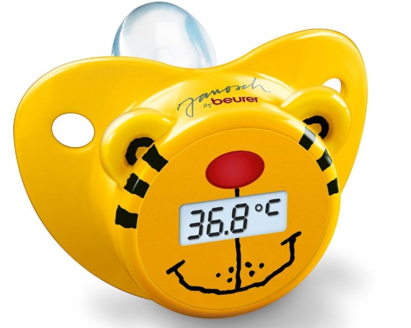 For children, electronic devices in the form of nipples are more convenient to use, with the help of which temperature is measured through the mouth. At the same time, do not forget that it is impossible to boil such a nipple, and to maintain its purity it is necessary to use special means.
