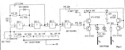 Using an electrical circuit, you can make a water ionizer yourself at home. The diagram shows how the device works.