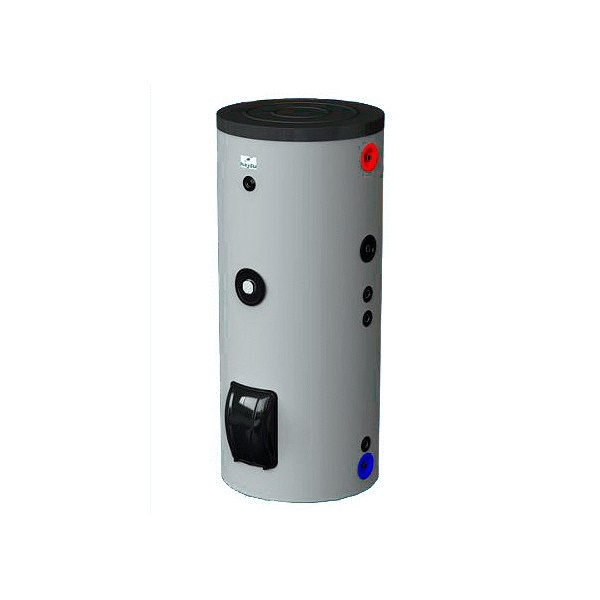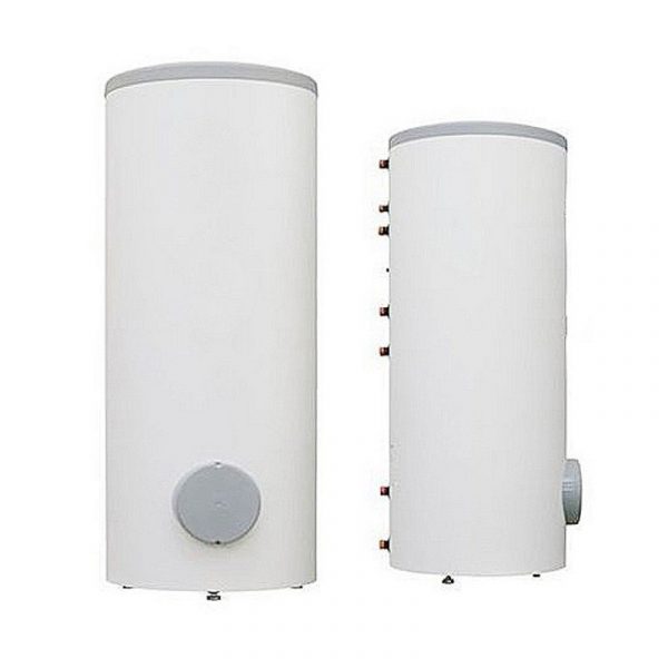 Boilers of this type got their name - “indirect” because they do not have their own heating elements. They are connected to an external heating system, receiving heat from it to heat consumer water. Therefore, any water heater of this type is equipped with a heat carrier supply circuit and a circuit for pumping heated water. In shape it is a metal tank of a cylindrical, less often cubic form, into which cold water is poured, and equipment has been built in to circulate warm water from an external heating source. To maintain the achieved water temperature, a layer of thermal insulation is applied to the tank. The useful volume of heated water in different models is in the range of 60 - 400 liters.