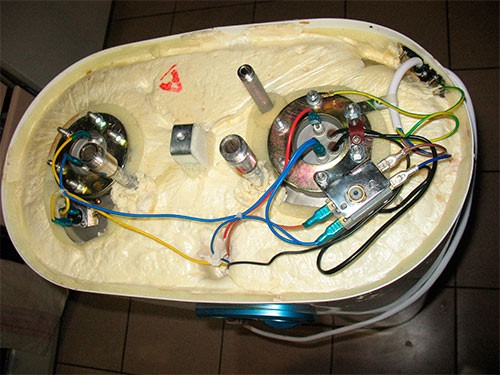 If leaks are detected on the body, turn off the boiler power, disconnect the terminal clamps from one or two heating elements (in some designs of water heaters). To detect in which of the two Tenes there is a leak, measure the resistance between the heating element and its body. Where resistance tends to infinity, the heating element is not damaged. In a faulty Ten, the resistance will have a finite value (about 450 kOhm).