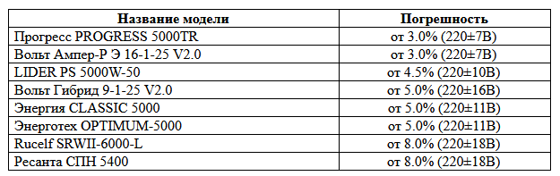 This parameter is important for high-precision equipment, it shows how much the voltage after the device will differ from 220V. According to GOST, the deviation of ± 10% is permissible for the normal functioning of most equipment.