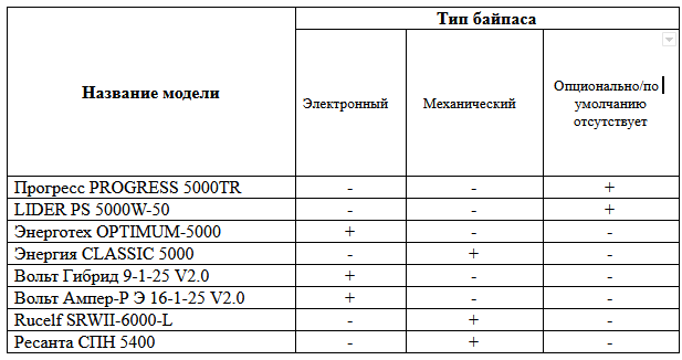 Bypass mode is designed to connect the load bypassing the stabilizer in case of problems with it, or if necessary, start a high-power load, which is not recommended to be switched on through the adjustment circuit. Distinguish between mechanical and electronic transit. At the first, the voltage from the network is directly transferred to the load without any protection. With an electronic product, it passes voltage without stabilization, but at critically low or high values it disconnects the load, i.e. performs the function of a relay.