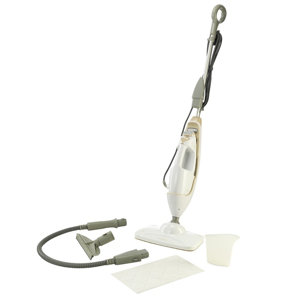 A small device that can perfectly complement a vacuum cleaner. Dissolves pollution and collects them with a special rag. Moreover, the surface is disinfected even without the use of chemicals. Works from a network. The power cord is only 4 meters long, which can create a number of inconveniences when cleaning a large apartment. You will have to periodically reconnect the steam cleaner to another outlet. For ease of carrying, a special handle is provided. The weight of 2.3 kg will allow you to keep the device on weight for a long time and at the same time not get tired.