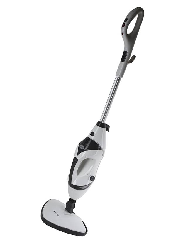 Premium floor mop equipped with a wide variety of nozzles. It can be used for cleaning any surfaces, as well as steaming things. There is a metal brush with which you can clean stubborn dirt from any surface. There is a removable water tank with a volume of 0.5 liters. This amount is enough for an average of 10 minutes of active cleaning. In addition to cleaning, there is also provided for steam disinfection, heated to 110 degrees.