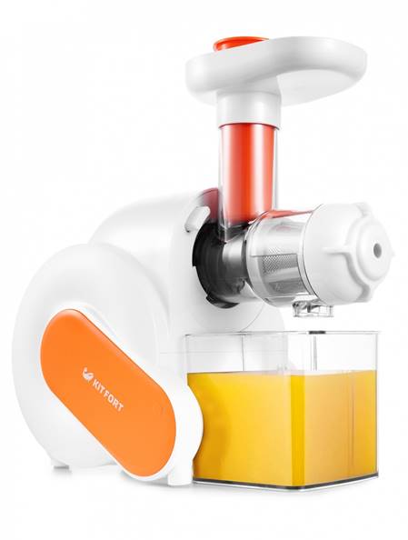 Extremely easy to use model for obtaining juices from fruits, vegetables and berries. It is best suited specifically for berries, since after large fruits in the parts of the mechanism there is a lot of pulp. And if you don’t wash the device in time, its effectiveness will drop dramatically. Not to mention overall longevity. Obviously, getting pure juice without pulp will not work. But for some users this is only a plus. Before receiving vegetable juices, it is recommended to peel the fruits and cut into small pieces.