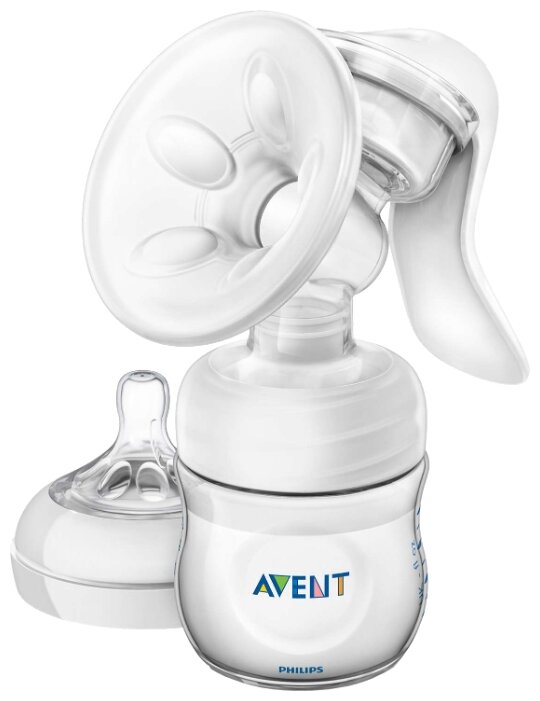 A novelty of a well-known manufacturer is a convenient and easy-to-use device for expressing milk in an individually adjustable mode. The set includes a silicone funnel with massage effect, a 125 ml plastic bottle, a slow-flow nipple (for newborns), a lid, breast pads. This breast pump is good because it takes up little space, it is very convenient to take with you.