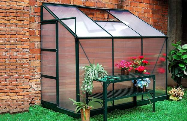- Shed design - often such greenhouses can be found near the walls of the house, thereby saving free space. The roof is made on the south side to protect the greenhouse from wind, snow loads and capture more sunlight.