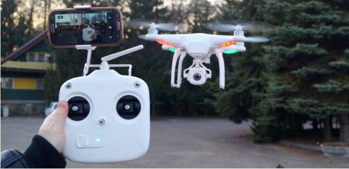 The simplest control option is most often used - the quadrocopter is equipped with a control panel that houses a small screen (the picture from the drone’s camera is broadcast there) and joysticks for controlling the rotors. For popular models, control can be implemented through a proprietary smartphone application using the Bluetooth / WiFi protocol (in this case, there may be problems with range due to the small radius of action of these protocols).