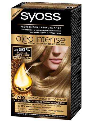 | Syoss oleo intense | 273 | A persistent agent, without ammonia, based on oil, stains strands well, gives them a persistent color and natural shine. |