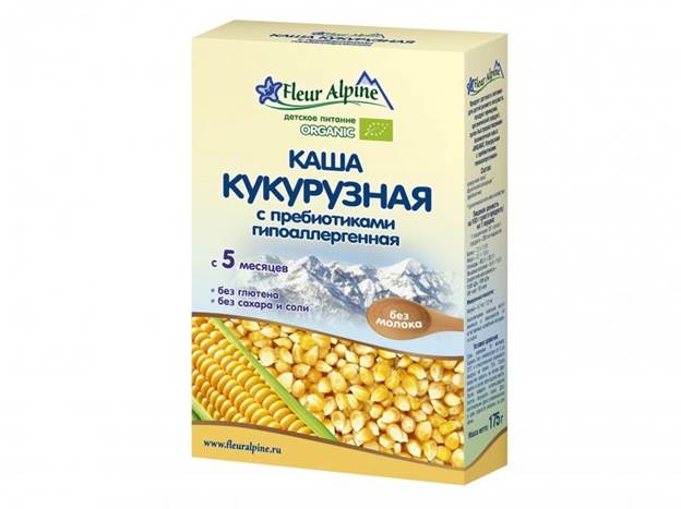 This manufacturer also offers several variations of cereals. You can buy rice, buckwheat, corn and oat. The latter is recommended for older children, as it already contains gluten. Vitamin B1, necessary for the proper development, is added to all products. If it is necessary to establish the digestion of the baby, then you should purchase the corn version. It is enriched with prebiotics.
