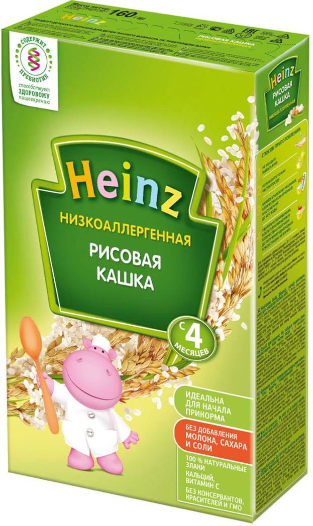| Best gluten-free dairy-free cereals for a first feeding | Heinz Rice Low Allergy | 160 | Chicory fibers have been added to improve digestion. Immunity is enhanced by vitamin C. |